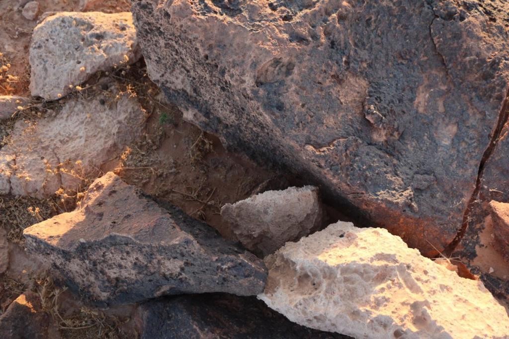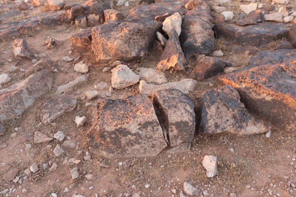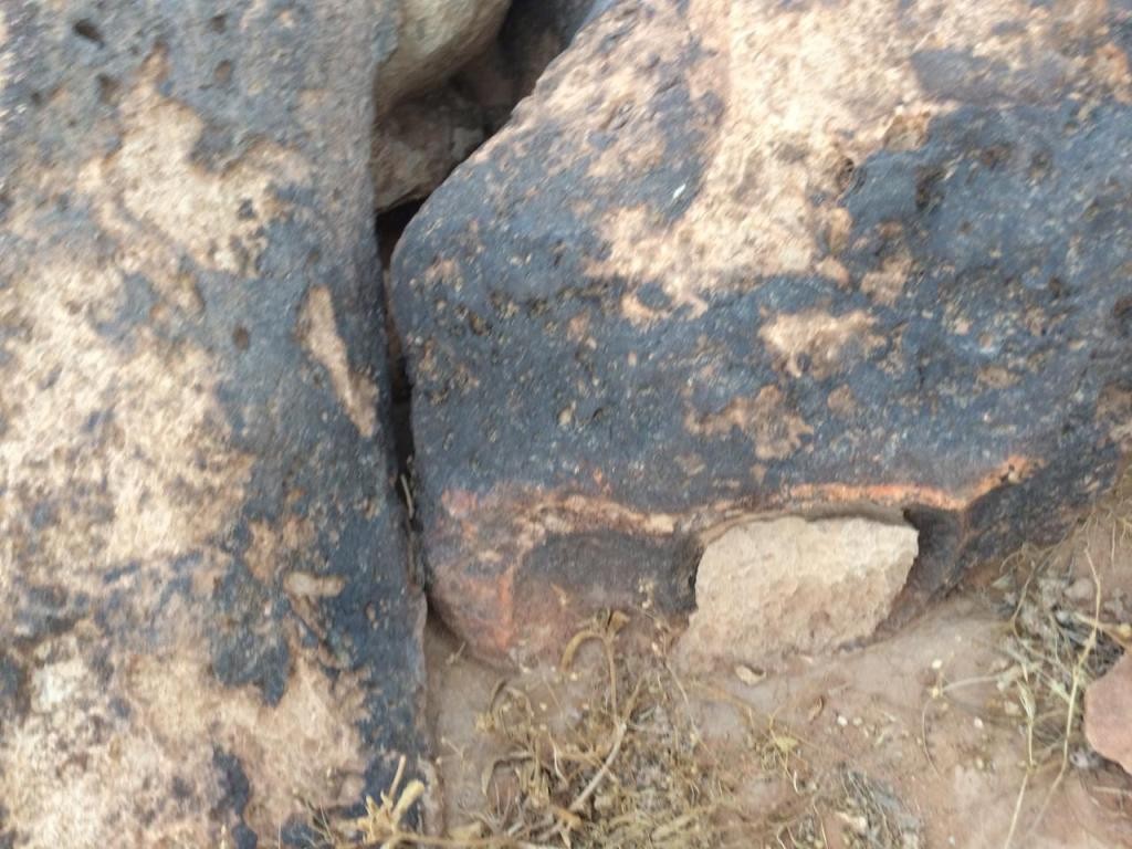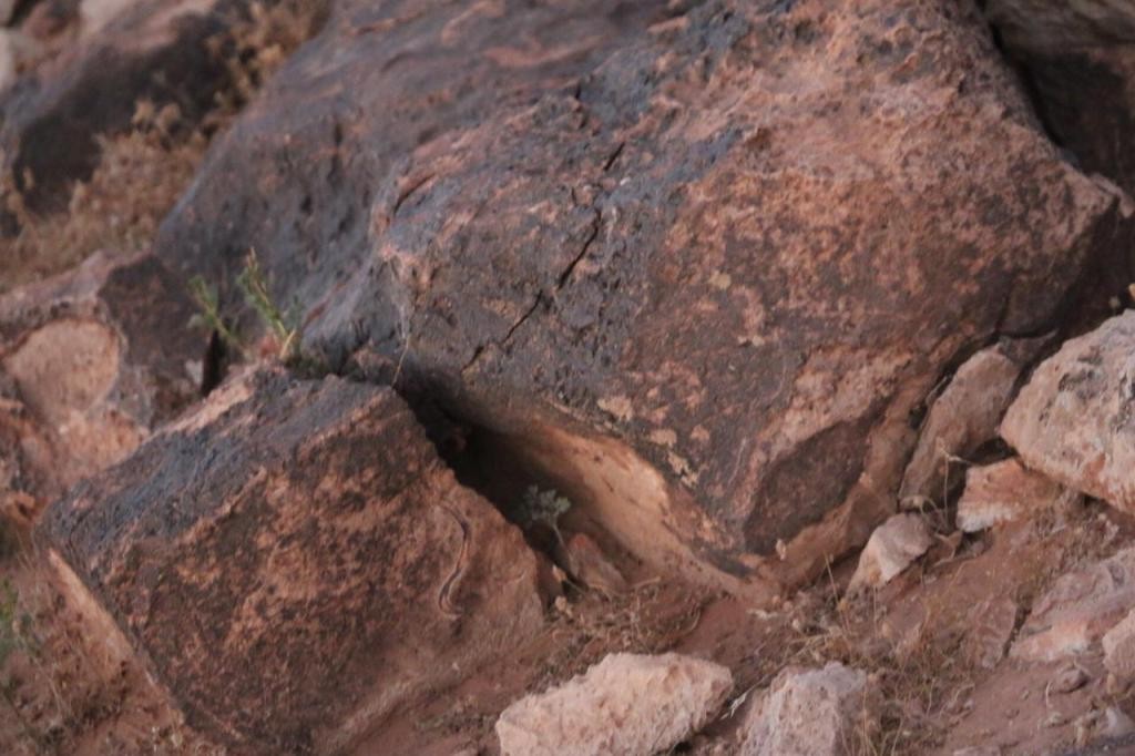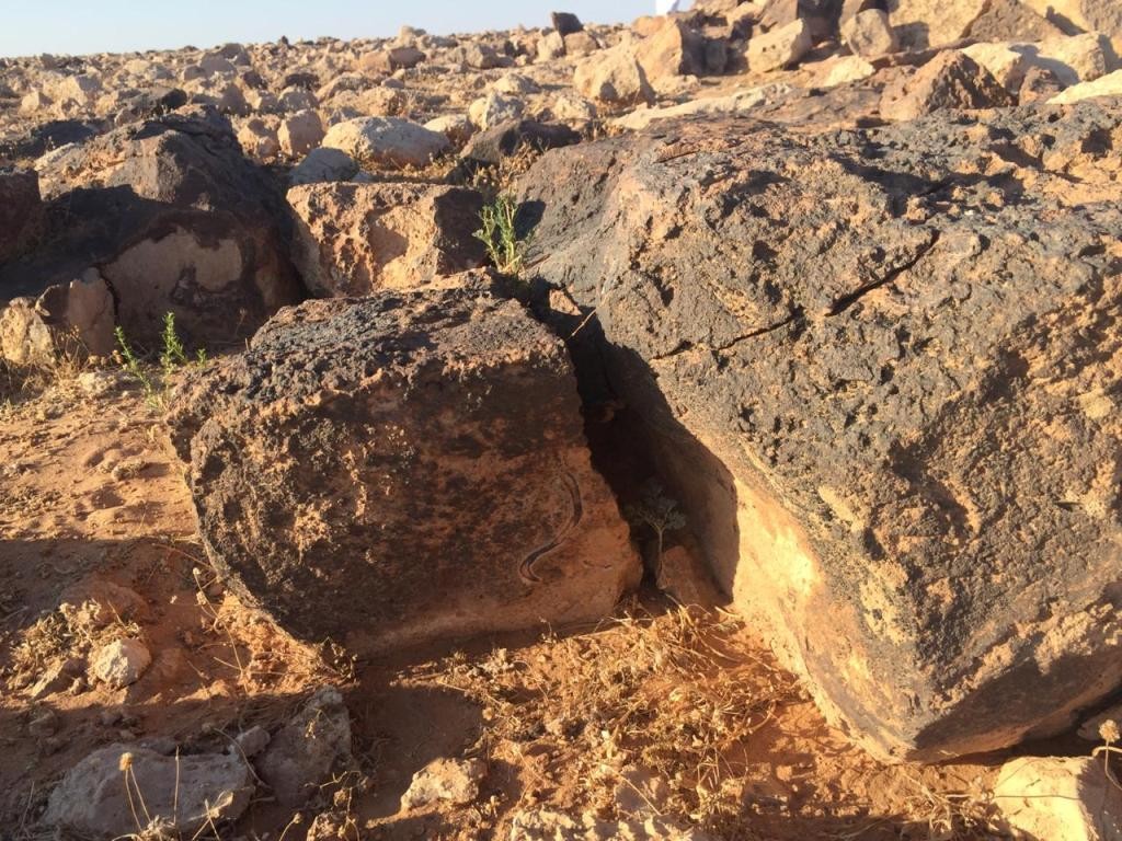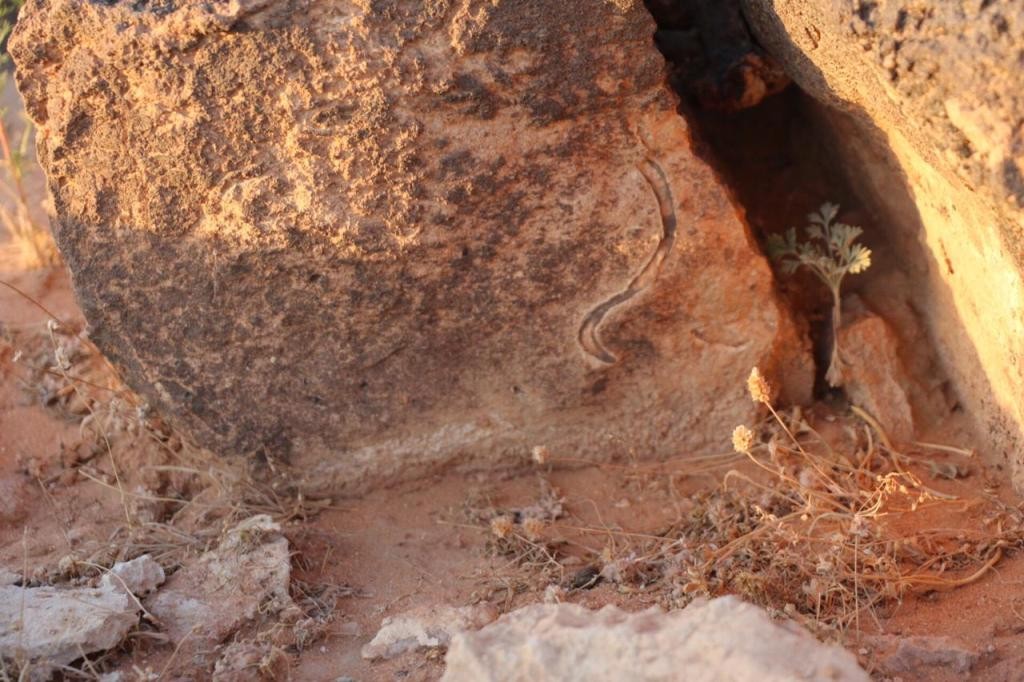 هنا برأيي يتوجب الفحص وفحص الصخرة التي خلف صخرة الأفعى عن جرن مغلق عبارة عن درج صخري جانبي ...!!!