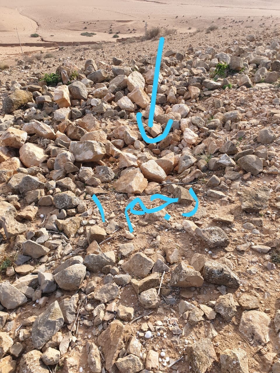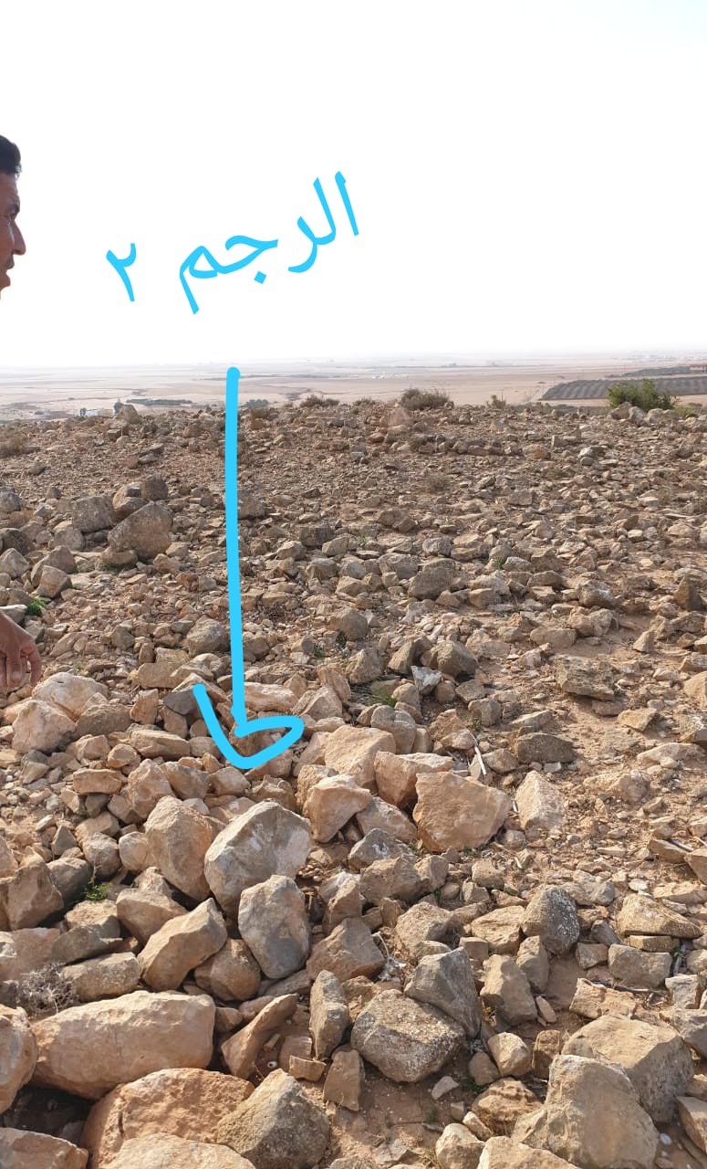 صورة. أي من جهة الجرون, وجدوا صخرتين على شكل سهم كل واحدة منهما تشير الى موقع الجرون في المثلث.