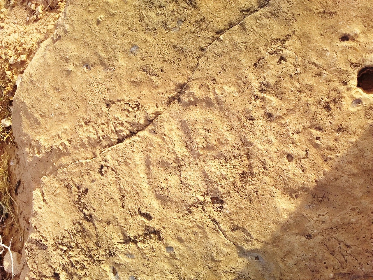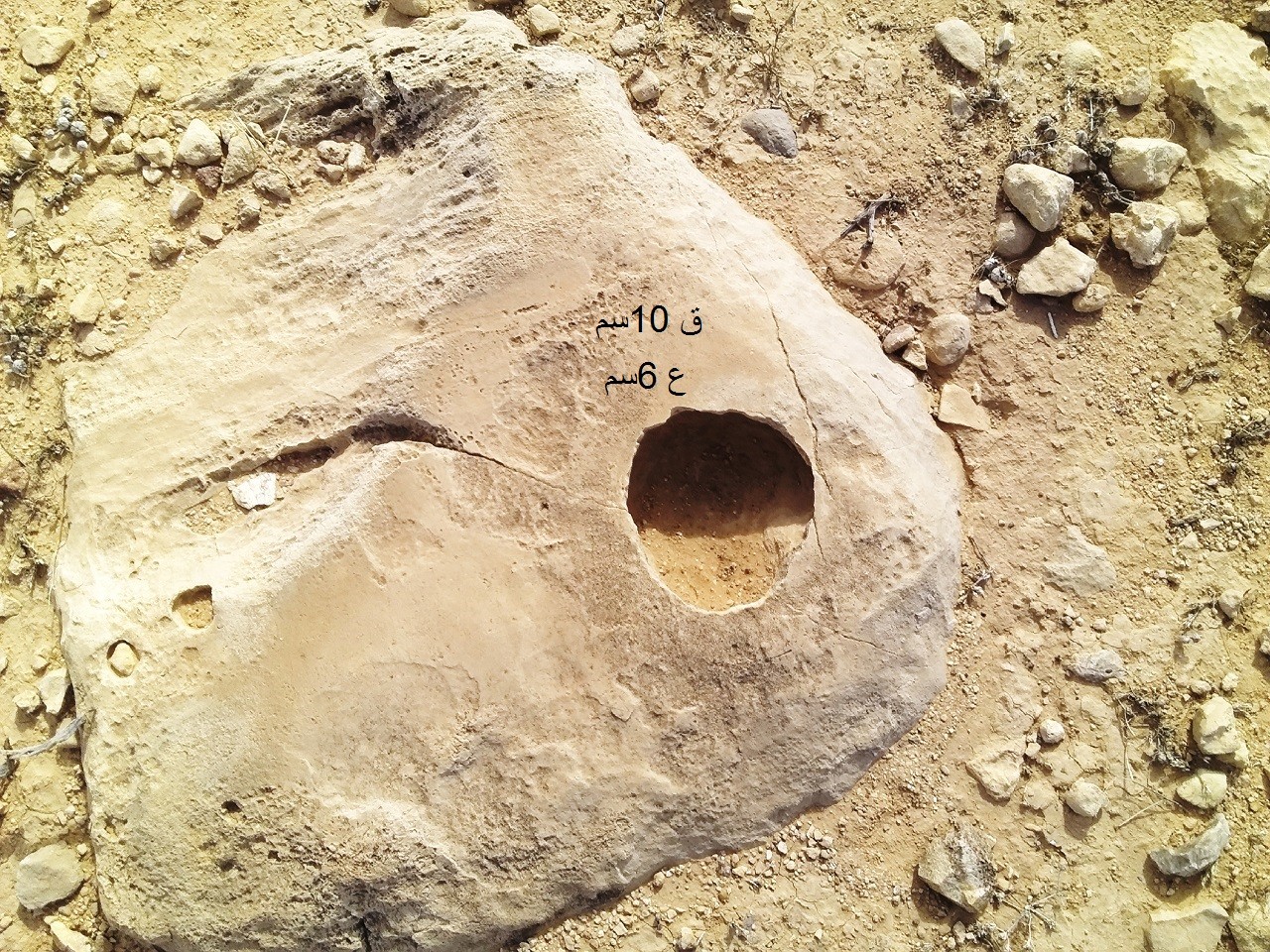 الاشارة عبارة عن دائرة في وسطها زائد حجمها مثل حجم الكف عمق الحفر 0.5 الى 1سم تقريبا وهي سماوية .