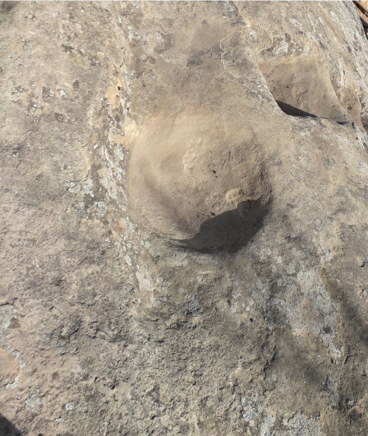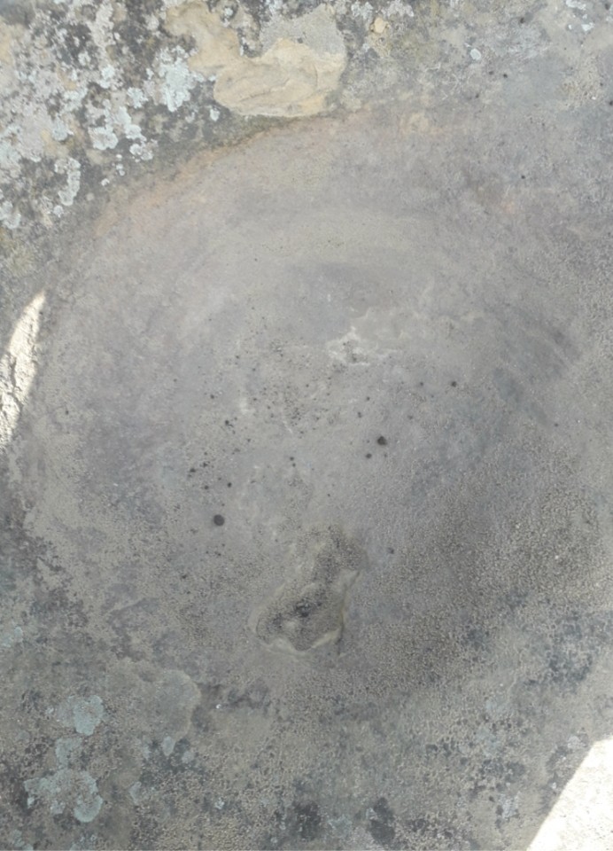 حفر يشبه الدرج على صخرة منفردة على سفح جبل متجه الى الى الجنوب وعلى سطح الصخرة يوجد جرن كبير قطره ٣٠ وعمقه ١٥