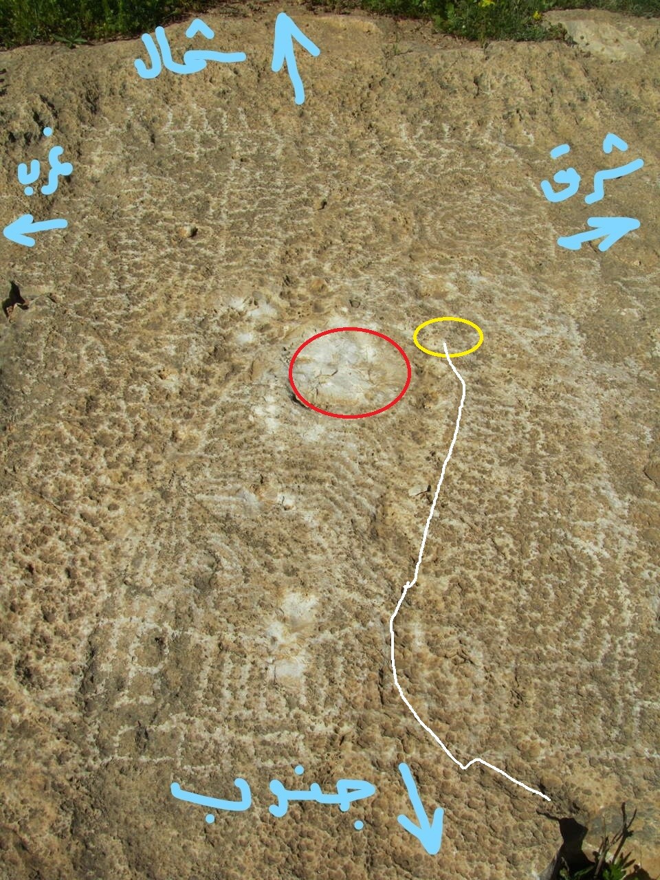 اخي الكريم الاثير شكرا على مرورك الكريم ,,, الرسمة عندما تقف عليها على الواقع هي اقرب للبومة ... بالنسبة للسيال ,سأقوم بالفحص ووضعك بالنتيجة ,,, اما مكان الدائرة الحمراء ,,, هو صخر مثل البقية وكان من ضمن الرسمة ,,, لكن للأسف تعرض للتخريب بمحاولة كسره بواسطة مهدة...وبالنسبة للشمس نعم نصف مشع ونصف لا وسوف اخد بشرحك وكلامك بأقرب وقت ,,,لكني احضرت صورة اكبر وأوضح ... واني ارفق فيديو للمنطقة امل ان يكن بها فائدة ,,, ولك مني كل الشكر اخي الكريم