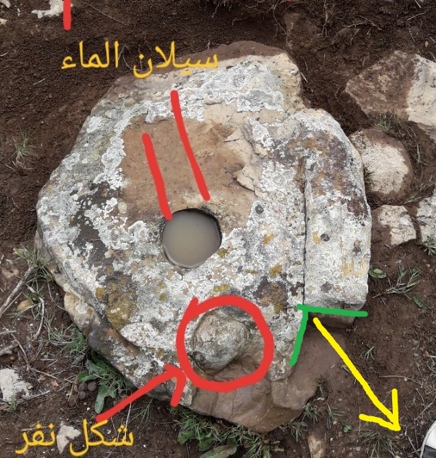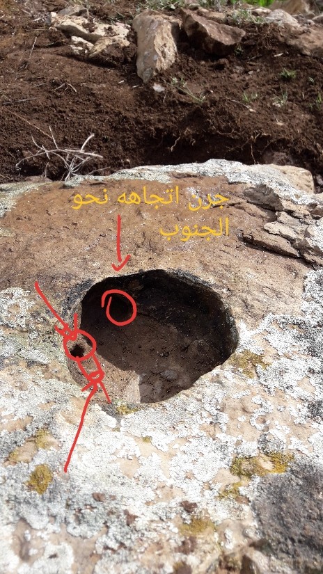 السلام عليكم ورحمة الله وبركاته الاخوة الكرام ارجو مساعدتي في تحليل هذه الإشارة المتمثلة في صخرة في منحدر جبلي بها جرن دائري داخله ثلاثة جرون عند سكب الماء اتجاهه نحو الشرق باعتبار انحدار الصخرة و ميلانها نحو الشرق