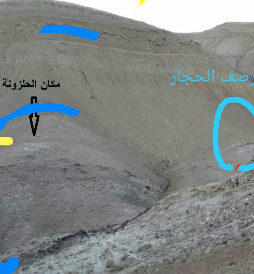 رح قدملك طريقة الحل كما توقعتها وليس الحل بشكل مباشر وهي صعبه وتحتاج انسان متمرس وذكي لتطبيقها ...............وهي عندما نقف فوق الاشاره نرى بها تشتيت واضح سيلات دقيقه مسحوبه من الهلال ومتشعبه بتجاهين امام فتحت الهلال بتجاه الغرب ..والشمال الغربي وهاذا يعطي الهلال بعد اخر ليس له علاقه بلقياس....فسيال الذي يذهب بتجاه الغرب خط الافق له الجبل المقابل ......والسيال الذي يذهب بتجاه الشمال الغربي يتبع سلسلة الانحدار بتجاه المسيل وهاذا يعني بان الهلال يندمج مع المسيل بتجاهين الغرب والشمال الغربي خط الافق يقطع المسيل ..........والمسيل نقطه مهمه ...........يجب الانتاه له جيدا ...... هاذه نقطه.......... والنقطه الثانيه نعود للسيال الذي يذهب بتجاه الجبل المقابل امام فتحة السيال......ونلاخظ. بنية الجبل تتالف من عدة مستويات او 3 درجات او ثلاث ارتفاعات مختلفه ....نلاحظ ان الدرجتين اللتان بلاعلى هم قريبتان من بعضهما .....ام الاولى فهي تبتعد عنهم قليلا. ويستحسن ان نلغي اعتقاد القبور ونربط الشحطاط بهاذه الدرجات في الجبل المقابل ................. ........ناتي لاهم نقطه وهي الحلزون. نلاحظ الخلزون يتالف من ثلاث التفافات.....نراها جيدا عندما نقلب الحلزون بيدنا ماذا لو كان الحلزون ثابت. ولانستطيع النظر له سوى من زاويه واحده وكان نظرنا من اسفله لايمكن ان نرى سو جزء من الالتفاف الذي الذي يكون من الاسفل.هنا نقطه مهمه يجب ان نختار. زاويه معينه لرؤيه 3 اجزاء من الخطوط نقطه مهمه .ماذا لو قسمنا الحلزون بنصف سوف يكون عندك 3 اجزاء من الهلال تكمل بعضها ....وهاذه هو مربط الفرس الهلال الذي نبحث عنه مجزء على ثلاث ابعاد .....1البعد الاول .......ان تنظر من الدرجه الاولى من الجبل المقابل بتجاه المسيل ليس المسيل بشكل كامل بل فقط امام النظر او بتجاه انحاء المسيل رح يكون في نحاء بسيط بمسيل وهاذا من الدرجه الاولى او الهضبه الاولى واظنها هي نفسها التي وجدت عليها الحلزون .........ونلاخظ اذ قمنا. بربط المسيل والحلزون.... المسيل يكون هوى اخر التفاف من الحلزون بلاعلى واصغرها .........البعد الثاني ان تنظر من الدرجه الثانيه وتاخذ خط افق الدرجه الاولى من الاعلى مع المسيل وطبق هاذا على الحلذزون سوف يكون انت امام الالتفاف الثاني من الحلزون ترى المسيل او لاتراه .3...البعد الثالث ان تنظر من اعلى درجه وتاخد خط افق الدرجه الثانيه و خط افق الدرجه الاولى ولكن لا اظن انك سوف ترى النقطه الاولى التى حددها من المسيل عليك دايما تغير موضعك في اعلىاخر درجه. وتاخذ يمين ويسار. لترى ثلاث التفافات من نقطه واحد ..من الاكبر للاصغر وهي خط افق الدرجه الثانيه ويكون اكبر جزء ويوجد به انحاء بسيط يظهر كمستقيم ولكن مع خط افق الدرجه الاولى سوف يكمل الدرجه الثانيه ويزيد الالتفاف قليلا ومع المسيل سوف يكتمل الهلال واتوقع نقطة النظر سوف تسقط على التفاف بسيط بلمسيل. عندها تختار نقطة الوسط ضمن الهلال الذي تراه وسوف يكون الا....هدف مهما كان حجمه وسوف تكون بجهة المقابله مابعد المسيل اي نفس جهة الاشاره .......دايما خلي نظرك بتجاه نهايه الهضاب يعني نظرك رح يكون زلف او مثل ما يقولون الاتراك جبراز.........ملاحظه الصور التي هي بلاسفل توضيحه ....وليست رسم تاكيد قد يكون النظر بشكل عكسي .....والجبل هو عباره عن حلزون ولكن بلعكس......واختصرت كلمات كثيره لها علاقه بلحلزون والنظر له من عدة مستويات وكذالك الجبل ....احبت ترك الساحه لك. وهذه ملاحظه اظن الهدف خارج قطر الهلال