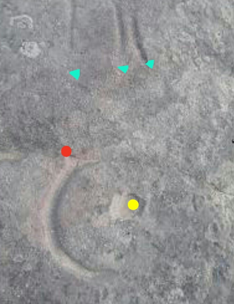 نلاحظ الشحطاط اعلى من الهلال ومسقطه بشكل افقي بتجاه الهلال اي بنهايتها. وكانها جمعها تنظر للهلال .....ما علاقة الشحطات والهلال والحلزون والصخره التي تقبع وسط المسيل وجريان المسيل واتجاه فتحة الهلال بتجاه الجبل المقابل واي اشاره ممكن ان تظهر ....... وكأنها جميعها تعني وجود شي يجب ان تستنجه وهاذا مالاحظته خلال عدة اشارات بمواضيع مختلفه لاحظت بان الاتراك لم يضعو دلاله للهدف بين الاشارات ..بل وضعو اشارات تكمل معاني لعز ان فهمته تستنتج مكان الهدف.