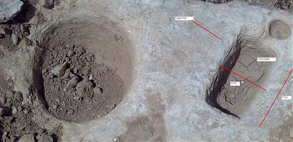 عباره عن جرن محفور مستطيل (13 سم عرض و 27 طول بعمق حولي 6- 7 سم على طرف الجرن بصمة بالاتجاه جنوب غرب ) وفي اعلى المستطيل يوجد جرن دائري صغير بينهما( سيّال 2 سم) والى الجنوب يوجد جرن دائري اكبر وعلى الاغلب ان طعمه للدفين )