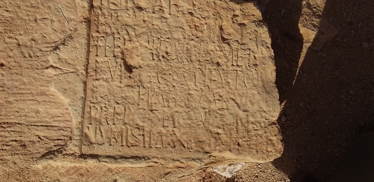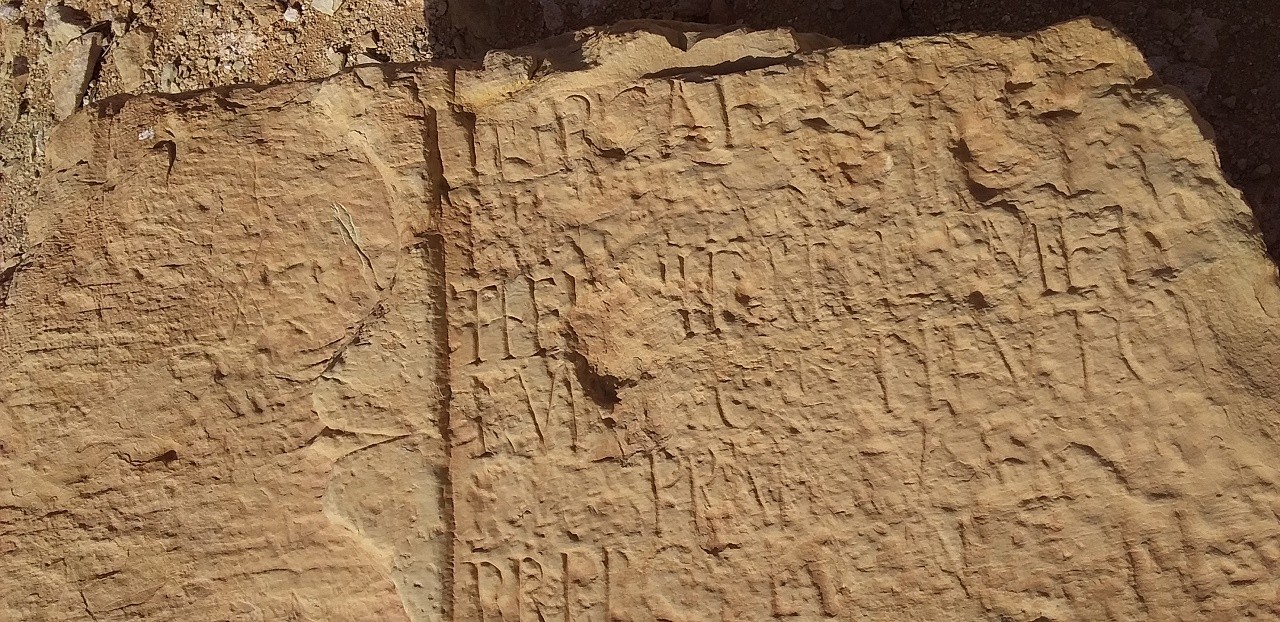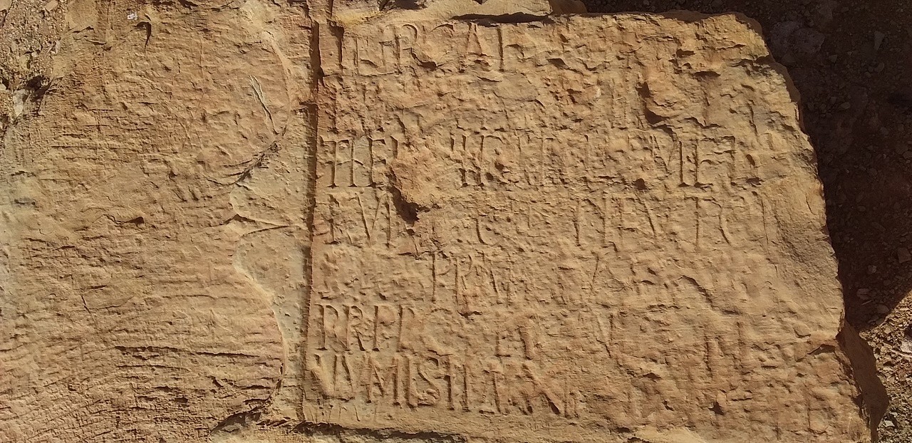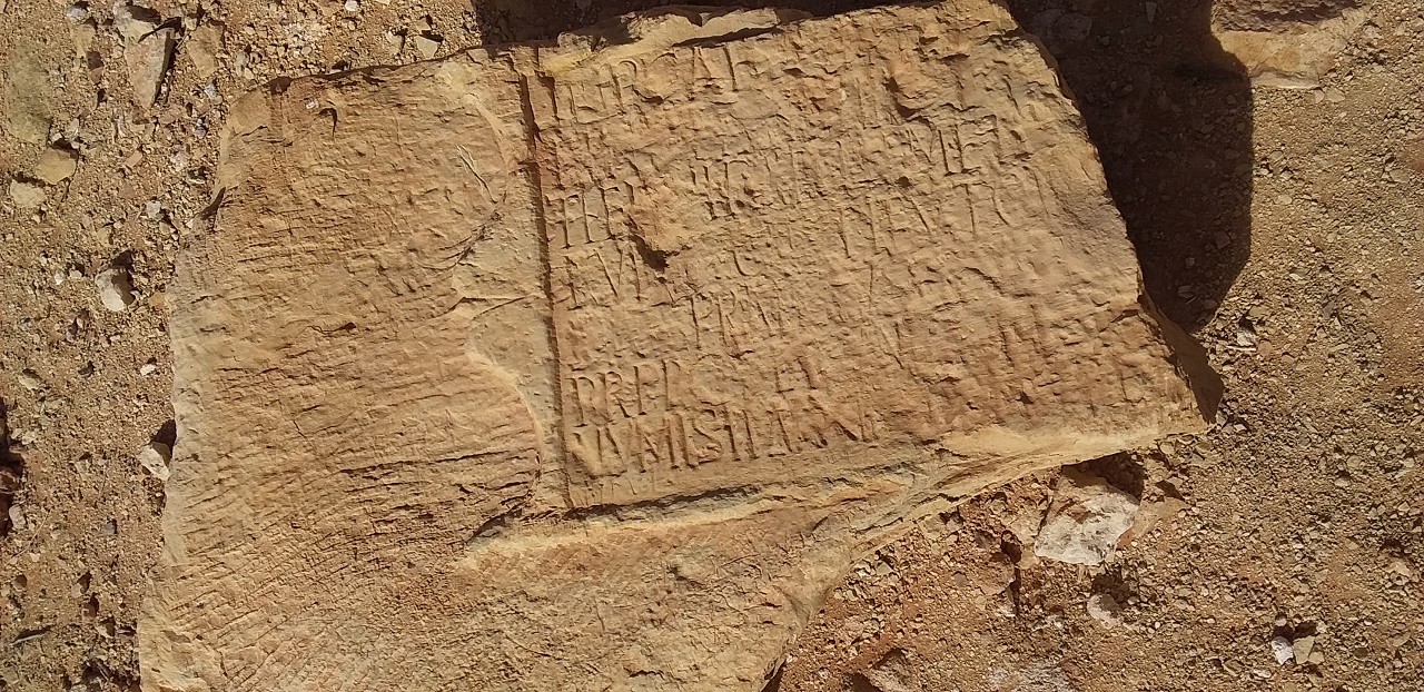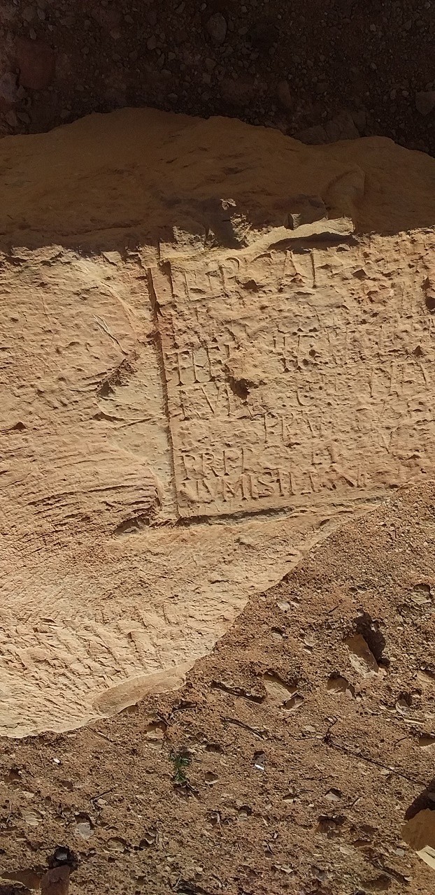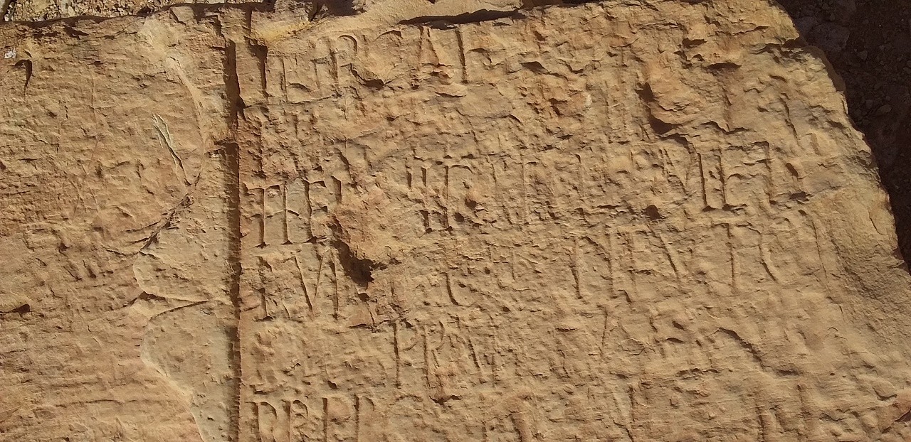 كتابة على حجر والحجر في الاصل كان عبارة عن بداية مدخل الباب لقصر .