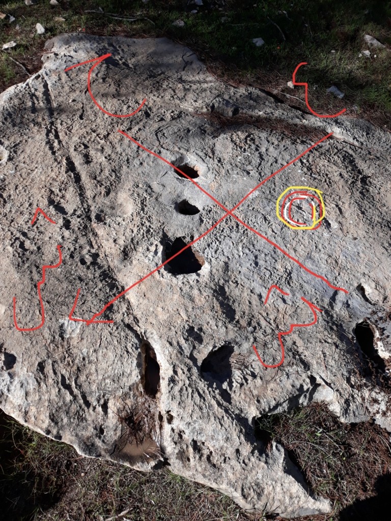 هذه ثلاثة جرون متتالية عميقة بجانبهم بصمة موجودة على تلة جبلية صغيرة