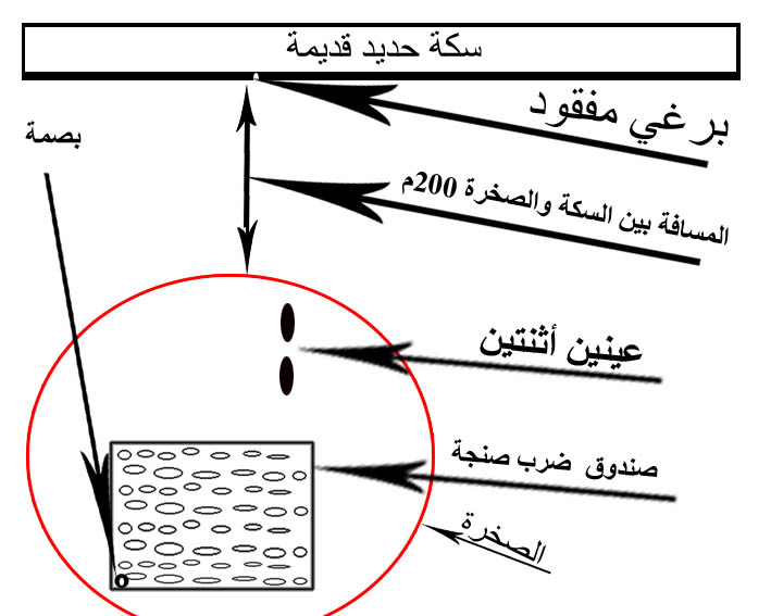 أخواني الأعزاء بالقرب من سكة حديد يوجد صخرة ولايوجد صخور قريبة منها والصخرة مقابل برغي مفقود في سكة الحديد والمسافة بي السكة والصخرة 200م والصخرة يوجد عليها صندوق ضربة صنجة وبصمة وعينان تنظران إلى الأمام وأرجو الأفادة ولكم جزيل الشكر