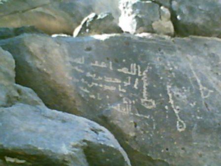 أنا من أهل المنطقة الموجودة فيها هذة الإشارة وسئلت الوالد أمده الله بالصحة والعافية عنها فأجاب أن جده كان يرعى الابل في هذا الوادي وكان يجلس تحت هذة الصخرة و هذة الكتابة موجودة عليها إي مايقارب مئه وخمسين سنة على أقل التقدير .